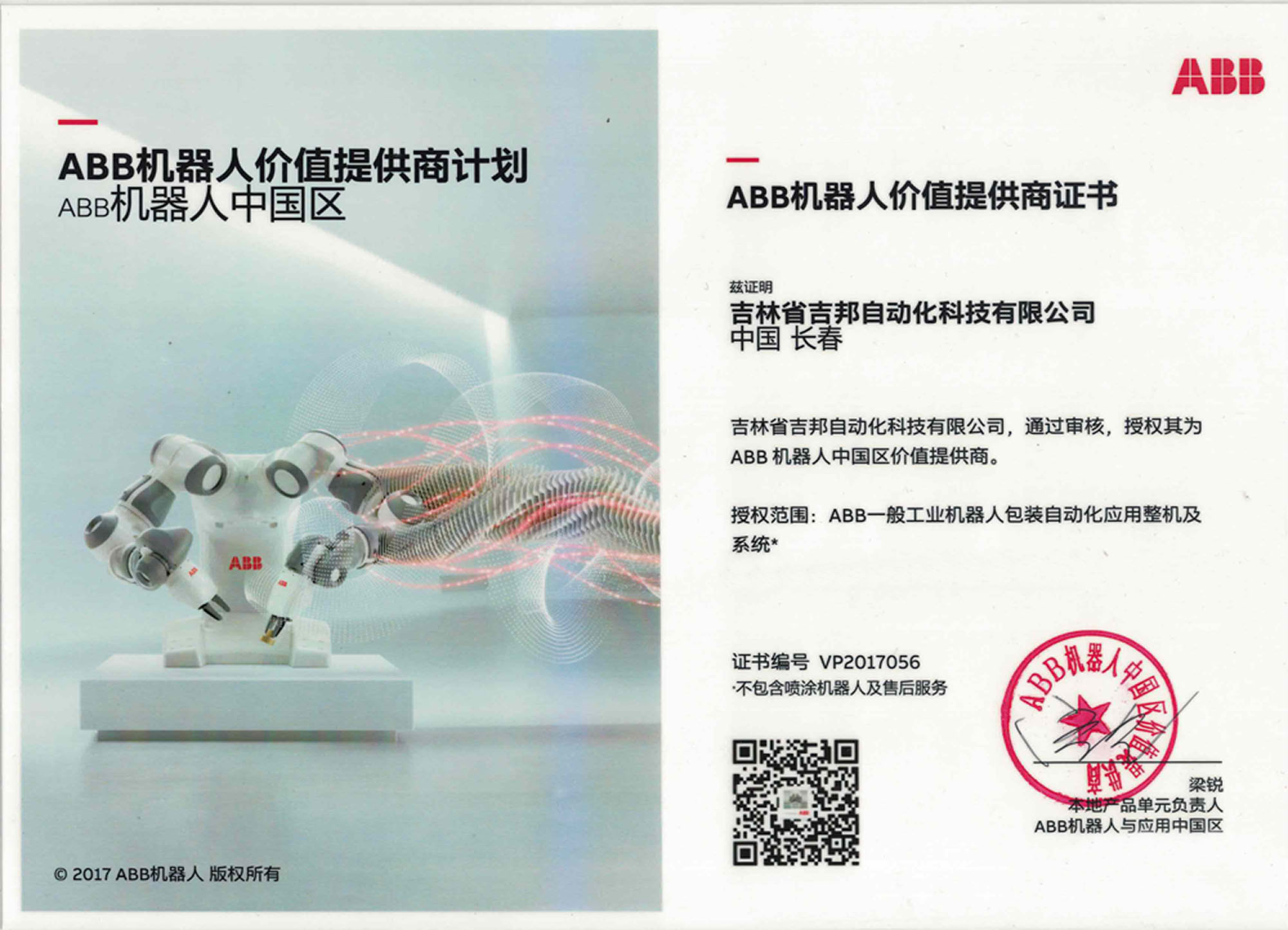 UR機(jī)器人經(jīng)銷商證書(shū)